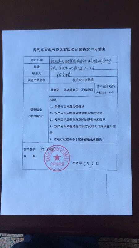 青島東來電氣設(shè)備有限公司調(diào)查客戶反饋表.pdf